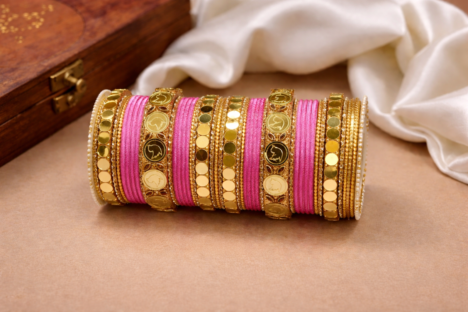 Discover exquisite zulka metal bangle sets crafted with 130+ years of heritage since 1890. As leading zulka metal bangle set manufacturers and suppliers, Shree Parshavnath Creations offers authentic, durable, and beautifully designed bangles that blend traditional craftsmanship with contemporary elegance. Our lightweight yet sturdy zulka metal bangles feature lustrous finishes, intricate detailing, and comfortable all-day wear. Perfect for weddings, festivals, or everyday styling, each set comes with authenticity certification and quality assurance. Choose from classic to modern designs, all hypoallergenic and built to last generations. Experience trusted quality, competitive pricing, and personalized service from India's most reliable zulka metal bangle set supplier. Your satisfaction is our legacy.