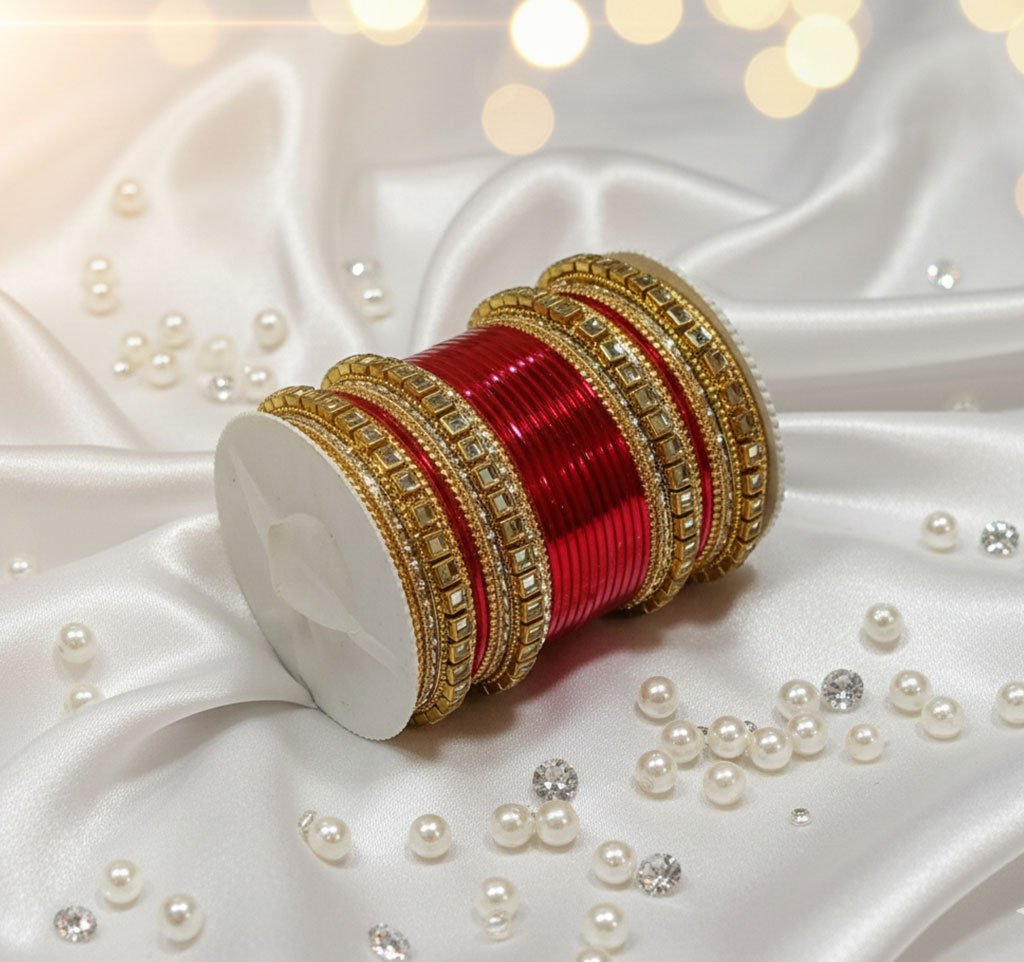 Bridal Chura Deign by Shree Parshavnath Creations - A heritage brand since 1890 offering premium, handcrafted bridal chura designs that blend traditional craftsmanship with modern aesthetics. Specializing in authentic red and white wedding bangles with customizable options, kalire varieties, and intricate embellishments. Trusted by generations of brides for quality, durability, and cultural authenticity, with expert guidance and seamless online shopping experience for your special day.